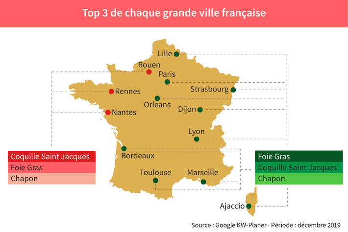 Le foie gras est le met le plus recherché par les Français en période de Noël. Mais quels sont nos autres plats favoris ? Il s’agit des coquilles Saint Jacques et du chapon. Évidemment, ce n’est pas une grande surprise. Mais savez-vous qu’il existe des différences régionales ?