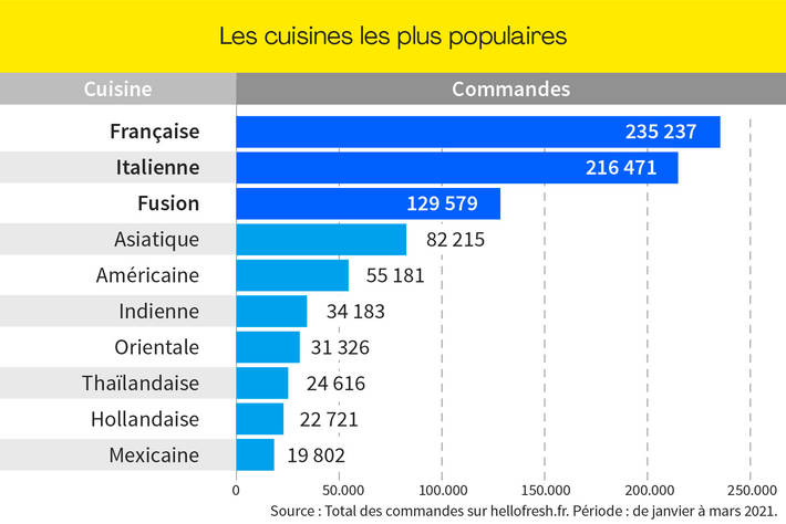 La France aime le classique : cocorico, la cuisine française reste la plus populaire, suivie par les plats italiens, la cuisine fusion et asiatique.
