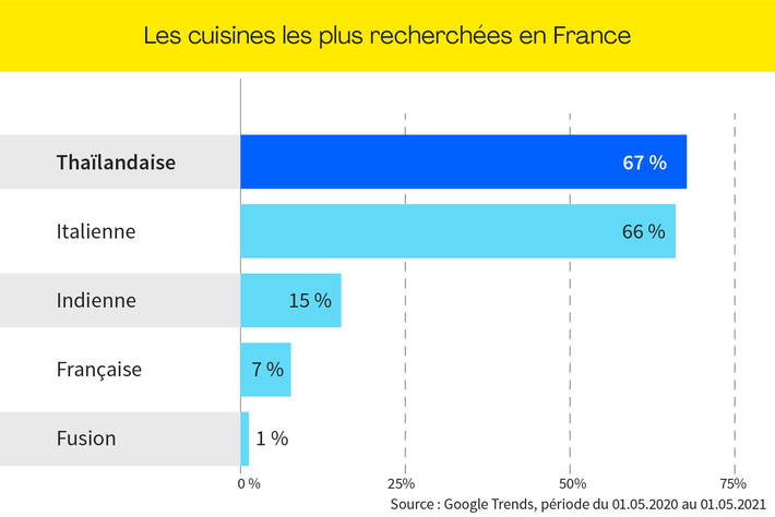 Les styles de cuisine les plus recherchés sur Google de janvier à mars 2021 sont les suivants: thaï, italien et indien.