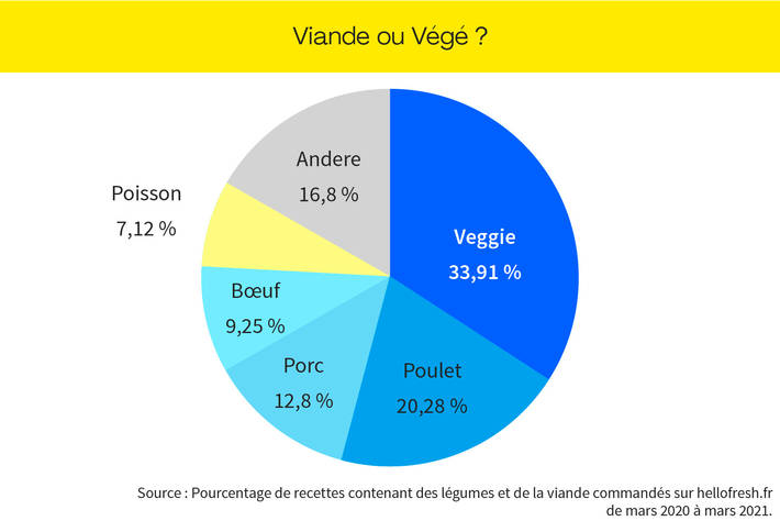 Pour recueillir les données, nous avons analysé et présenté les commandes passées sur hellofresh.fr entre janvier et mars 2021. En utilisant Google Trends, nous avons déterminé l'intérêt pour les différents types de cuisine entre mai 2020 et mai 2021 et constaté un certain engouement en faveur des thèmes du végétalisme et du végétarisme au cours de la période allant du 05.2020 au 05.2021 en France.