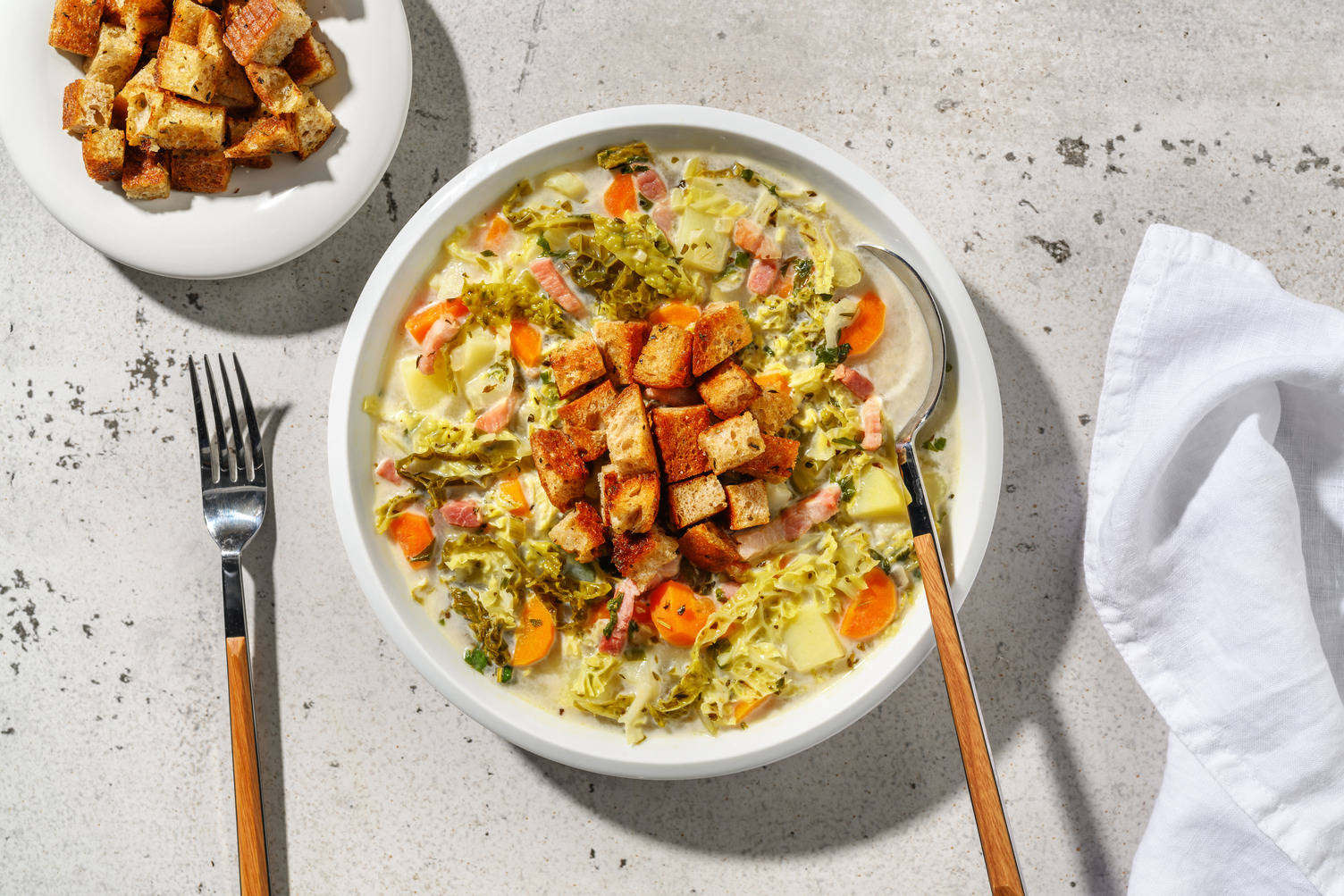 - Juste avant de servir, ajoutez la salade et mélangez.