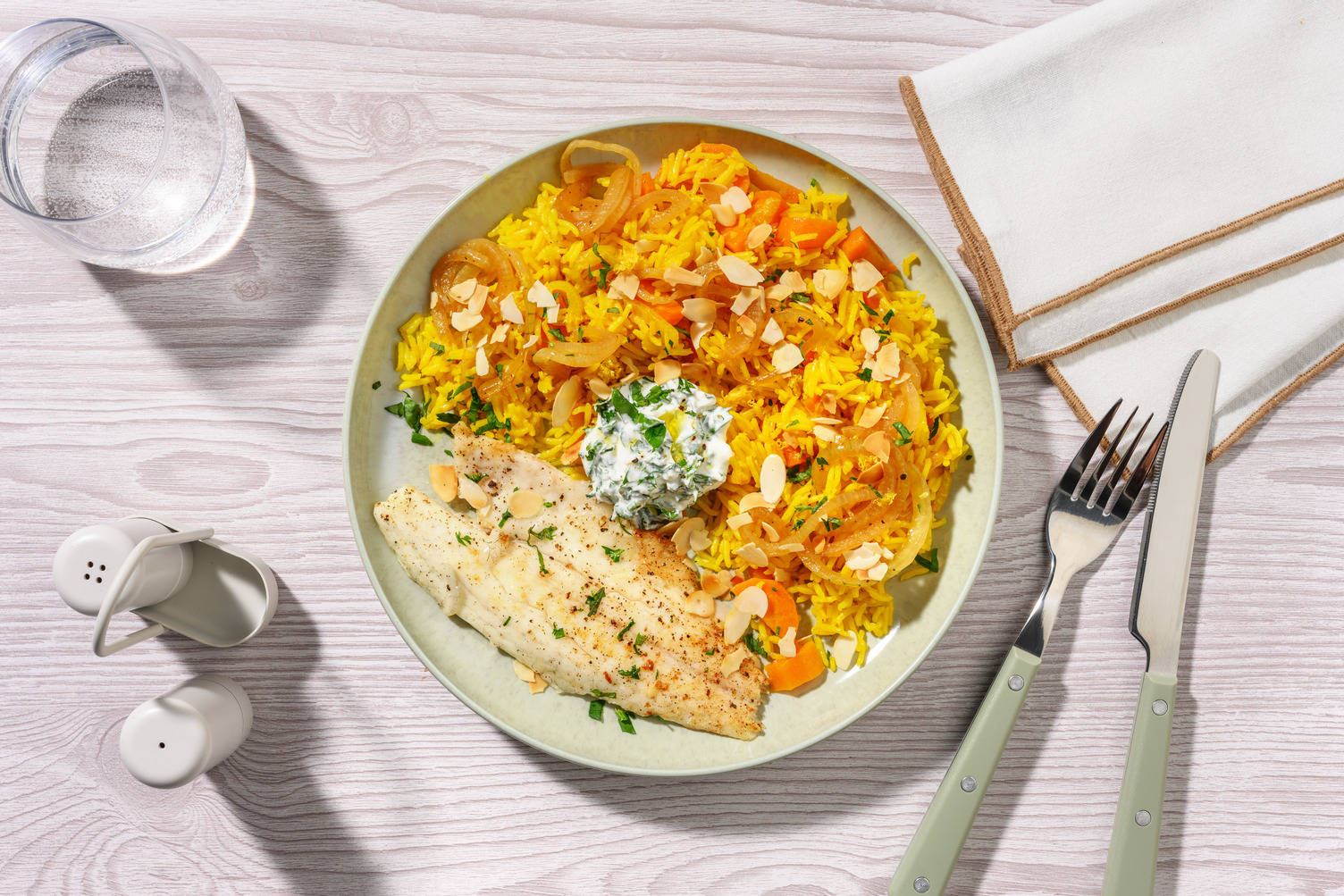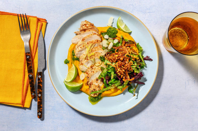 Répartissez la purée de pommes de terre et de betterave sur les assiettes. Placez les carottes et le filet mignon à côté. Versez la sauce sur le filet mignon. Garnissez du persil plat et des amandes effilées.