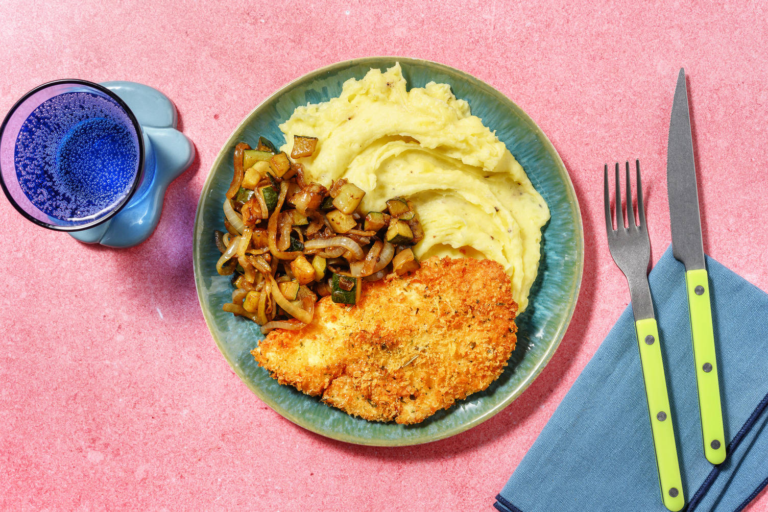 Pendant ce temps, faites chauffer le reste d’huile d’olive dans la poêle et faites cuire l’émincé de poulet 3 à 4 minutes à feu moyen-vif.