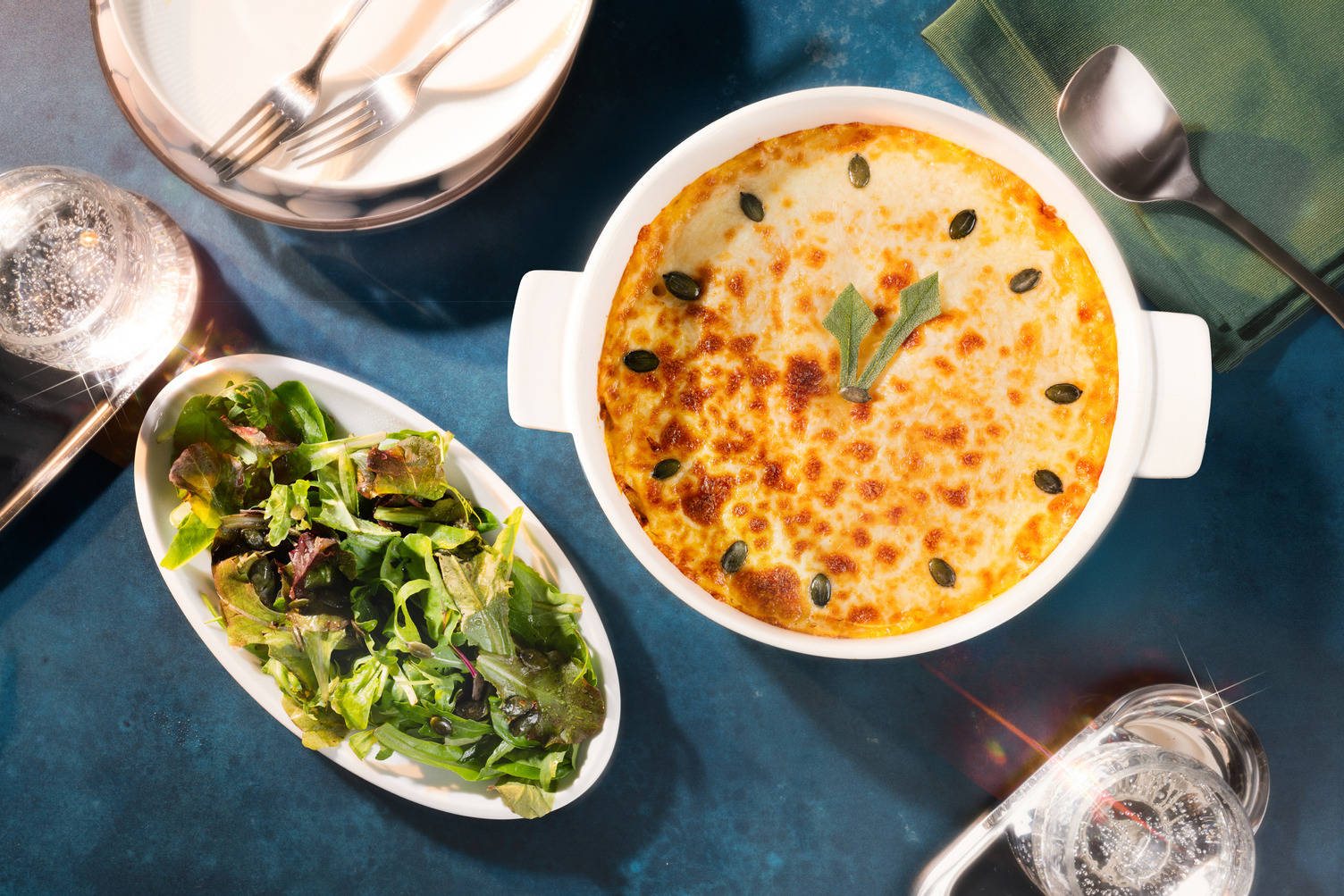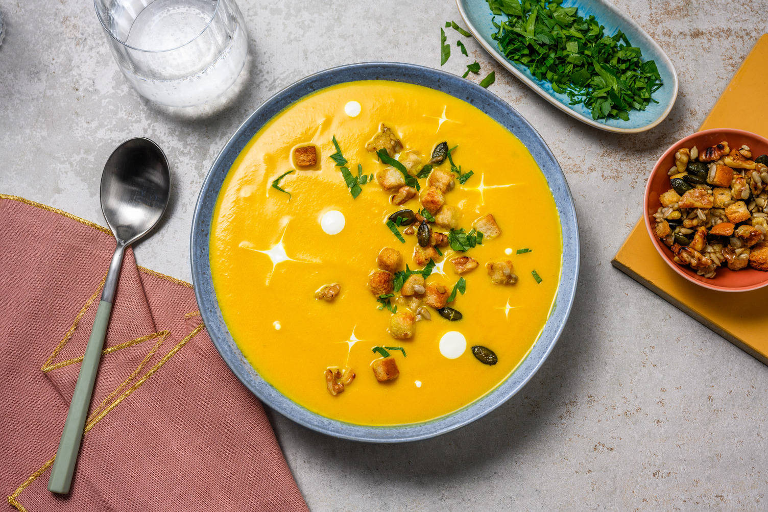 Préchauffez le four à 180 degrés.Coupez le potimarron en deux, épépinez-le. Taillez-le en dés de 2 à 3 cm et pesez.Faites rôtir les dés de potimarron au four sur la plaque de cuisson recouverte de papier sulfurisé 15 à 20 minutes. Laissez-les dans le four.Prélevez le zeste de l'orange, puis pressez-la.
