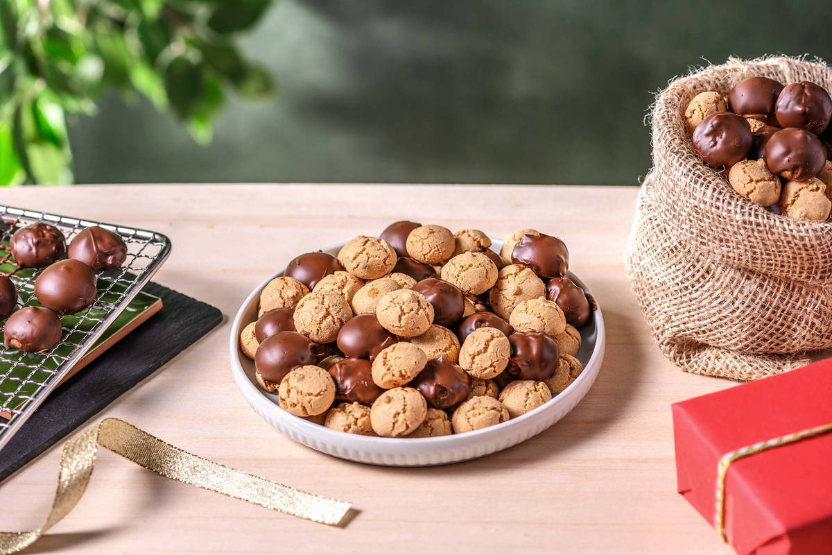 Enfournez les petits biscuits 17 à 20 minutes. Ils doivent être légèrement dorés. Laissez-les refroidir sur la plaque de cuisson. Faites-fondre les pépites de chocolat au bain-marie. Portez une bonne quantité à ébullition dans la petite casserole. Versez les pépites de chocolat dans un bol en verre plus grand que la casserole. Placez le bol dans la casserole et faites fondre le chocolat en remuant. Coupez le feu mais laissez le bol dans la casserole.Trempez la partie supérieure de la moitié des biscuits dans le chocolat fondu et disposez-les sur une grille pour que le chocolat se solidifie.