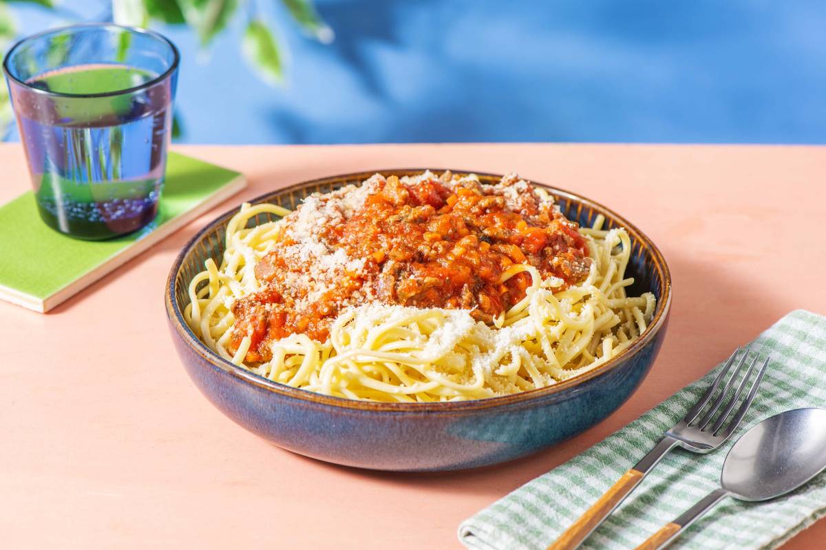 €15 / kg<p><p>Ingrédients : Linguine cuite 45% (eau, linguine 16% (semoule de BLE (GLUTEN) dur, eau), huile d’olive, sel), tomate pelée 26% (tomate, jus de tomate, correcteur d'acidité: acide citrique), eau, viande de bœuf cuite 5,7% (origine UE), oignon, carotte, mélange de FROMAGES râpés [fromage au LAIT pasteurisé (LAIT, sel, présure, conservateur : lysozyme d'ŒUF), fromage au LAIT cru (LAIT cru, sel, ferments lactiques, présure, conservateur : lysozyme d'ŒUF)], double concentré de tomate 1%, jus de veau lié aromatisé déshydraté (fécule, sel, arômes naturels, saccharose, graisse de poulet, plantes aromatiques, chicorée soluble, viande de veau, tomate, épices, antioxydant : extrait de romarin), ail, huile d’olive, amidon de maïs, persil, concentré de vin blanc (SULFITES), sel, thym, poivre blanc. ALLERGÈNES : Contient du Lait (lactose), céréales contenant du gluten (blé), de l'œuf, et sulfites. Peut contenir des mollusques, crustacés, poisson, cacahuètes, fruits à coque, du soja, de la moutarde, du céleri, et du sésame. CONSERVATION ET PRÉPARATION : À conserver entre 0 ⁰C et +6 ⁰C - Consommer dans les 4 jours après ouverture Service consommateur / exploitant: FESTINS DE SOLOGNE, Parc Activités Sologne, Rue Denis Papin, 41600 Lamotte-Beuvron, FRANCE Tél. 02 54 88 05 31 Pour votre santé, mangez au moins cinq fruits et légumes par jour. <small>HelloFresh met tout en œuvre pour communiquer les informations les plus exactes possibles sur ses produits mais ne peut cependant garantir l'exactitude, le caractère complet et/ou actuel de ces informations. Nos recettes sont régulièrement revues et améliorées, ce qui signifie que les informations concernant les allergènes (telle que la mention """"""""peut contenir de""""""""), la valeur nutritionnelle, les ingrédients ou tout autre détails sur nos produits peuvent être amenées à changer et que des différences peuvent apparaître entre les informations indiquées sur le Site Internet et/ou l'Application et celles présentes sur le produit. En cas de doute, toujours se référer aux informations présentent sur l'étiquette. Pour toute question sur nos produits, merci de contacter le service clients. Si vous avez des questions sur des produits qui ne sont pas vendus sous la marque HelloFresh vous pouvez également contacter directement le fabricant des ces produits si vous le souhaitez.</small><p>