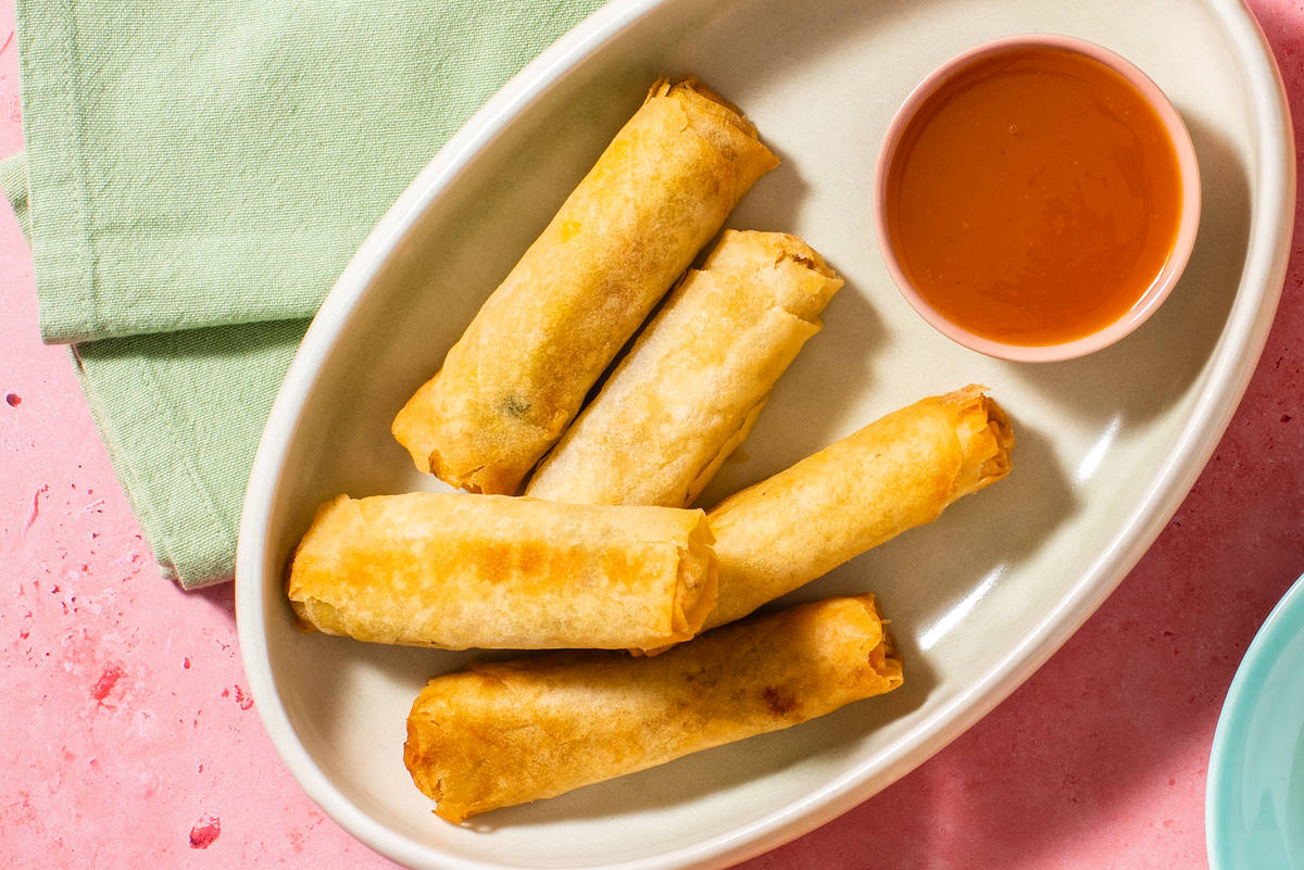 Mini nems de poulet & légumes avec une sauce nuoc-mâm