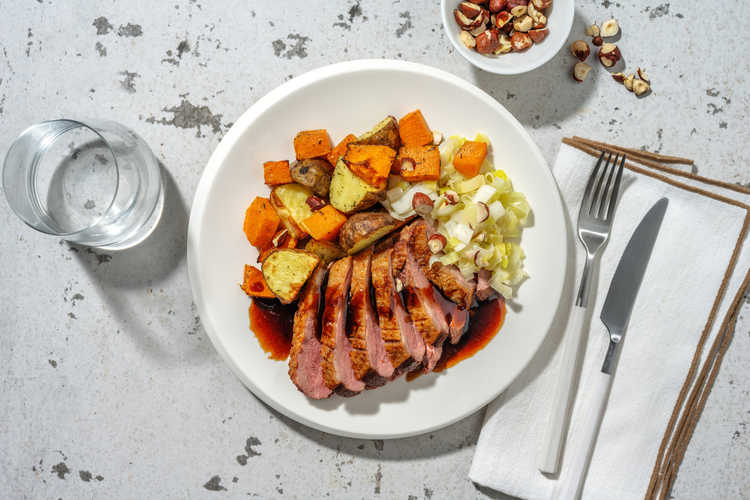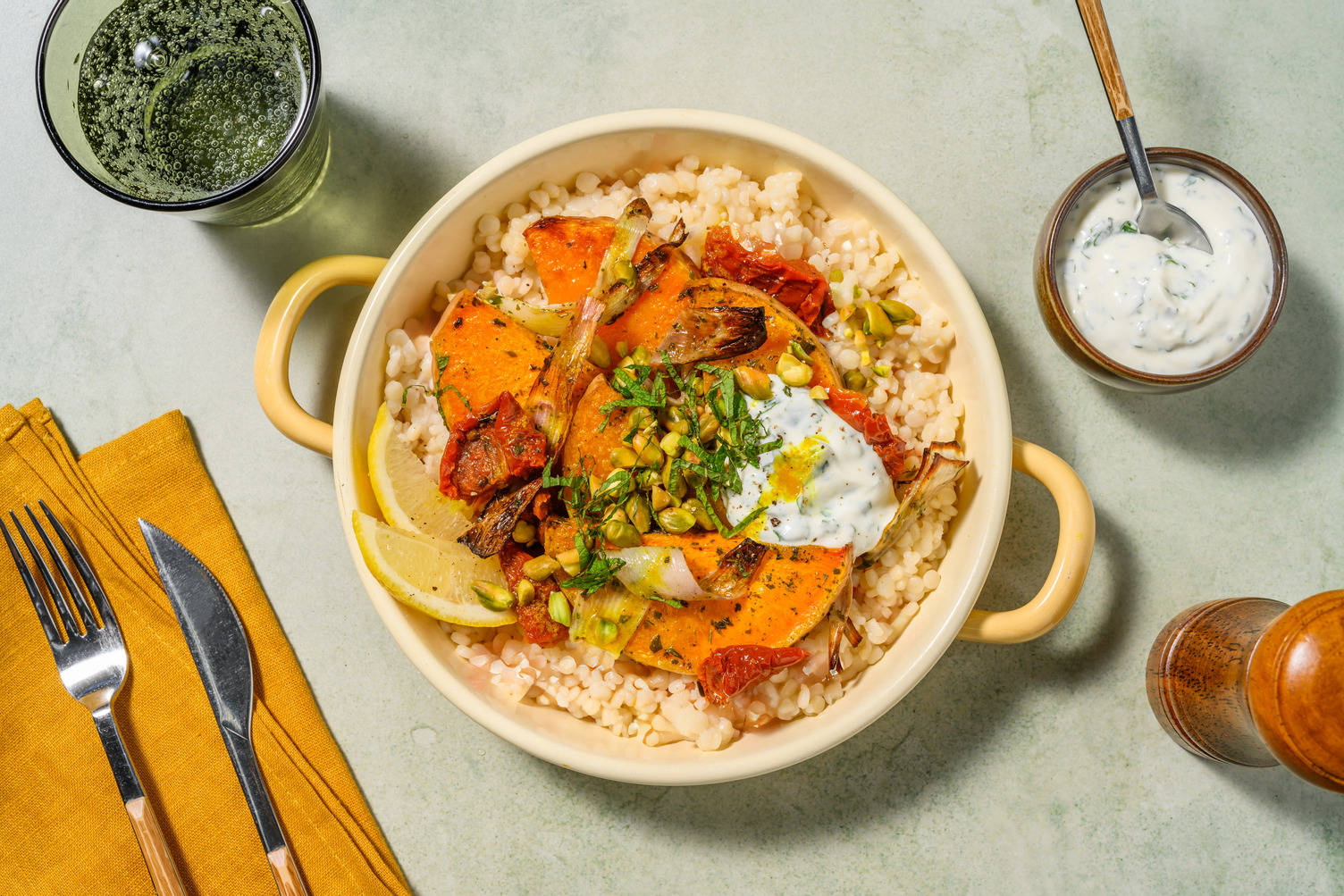 La volaille et la courge se marient parfaitement bien, vous trouverez donc facilement des idées qui mêlent les deux sur HelloFresh. Essayez par exemple la butternut rôtie, poulet et fromage bleu, avec du boulgour, des noix et de l’origan, ou encore le poulet rôti et couscous perlé à l’orientale, avec de la butternut et une sauce aux herbes.