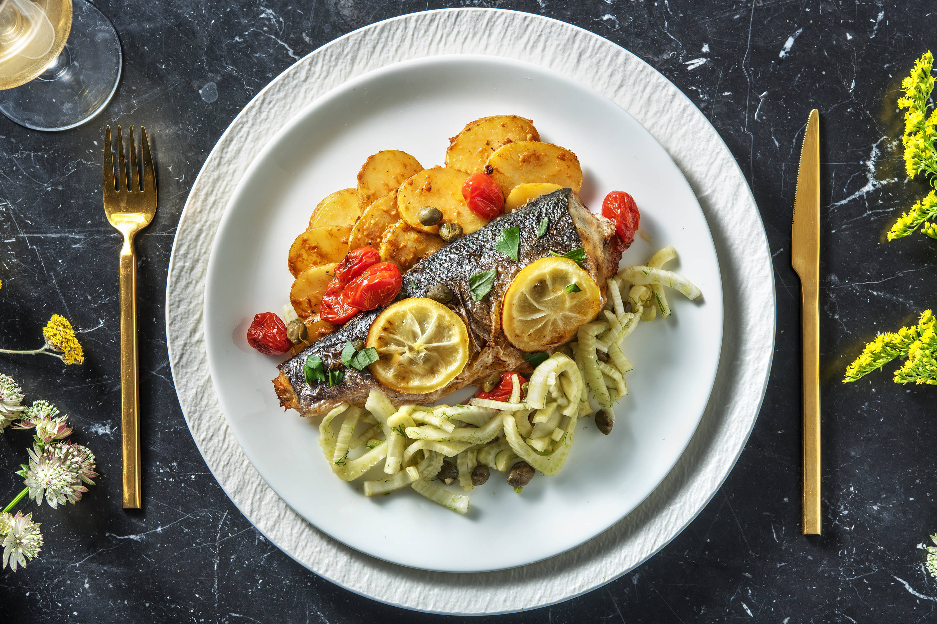 Les agrumes, les herbes, l’ail, la tomate et les olives accompagnent très bien le bar, surtout dans des plats légers d’inspiration méditerranéenne.
