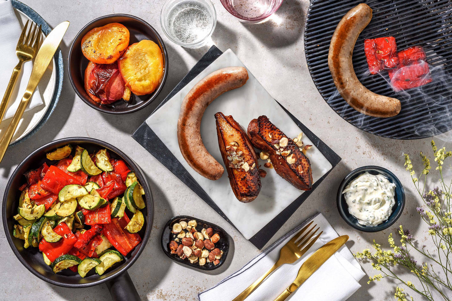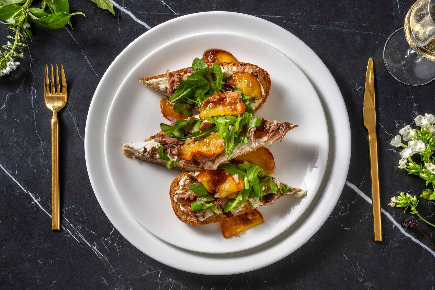 Les fruits rôtis accompagnent délicieusement le canard. En été, choisissez des abricots ou des pêches grillées pour une touche acidulée. En hiver, faites caraméliser des pommes ou des poires avec du miel et du thym.