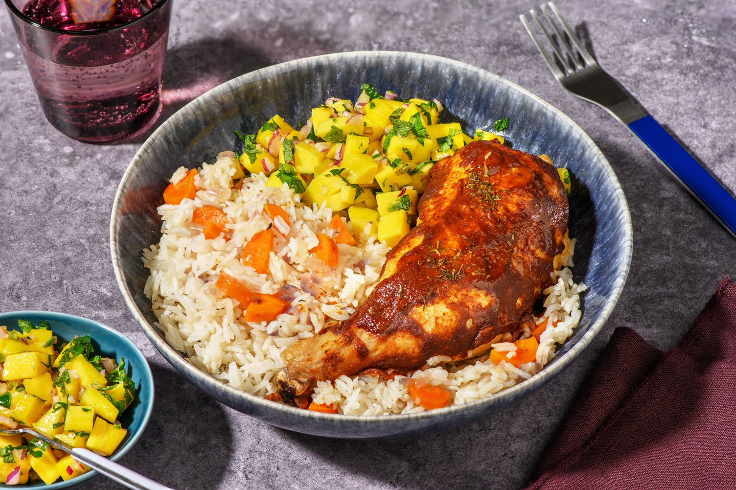 Pendant ce temps, dans le saladier, mélangez la roquette à l’huile d’olive vierge extra et au vinaigre balsamique noir. Salez et poivrez.